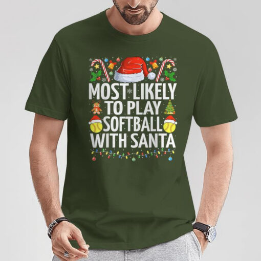 Most Likely To Play Softball With Santa Christmas Softball T-Shirt